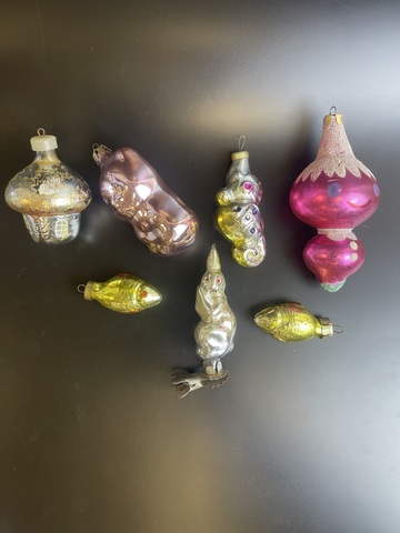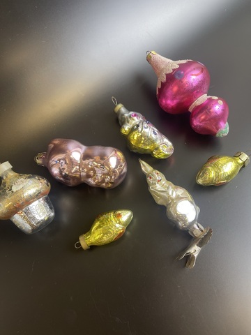 Ёлочные игрушки набор из 7 разных штук, заяц на прищепке(скол),морской конек, мишка, рыбки, стекло, винтаж СССР 1950-1990 гг. Присутствуют следы использования, имеется скол внизу зайца на прищепке. Состояние и комплектация на фото