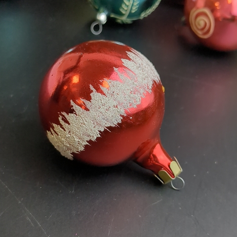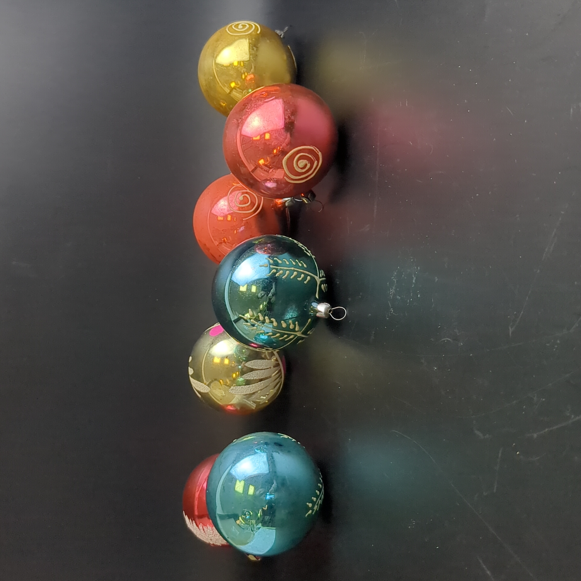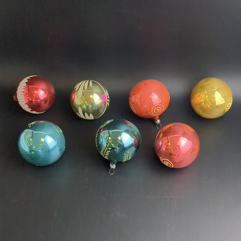 Ёлочные игрушки набор из 7 шариков, стекло, роспись, узоры, подвесные, винтаж СССР 1970-1990 гг