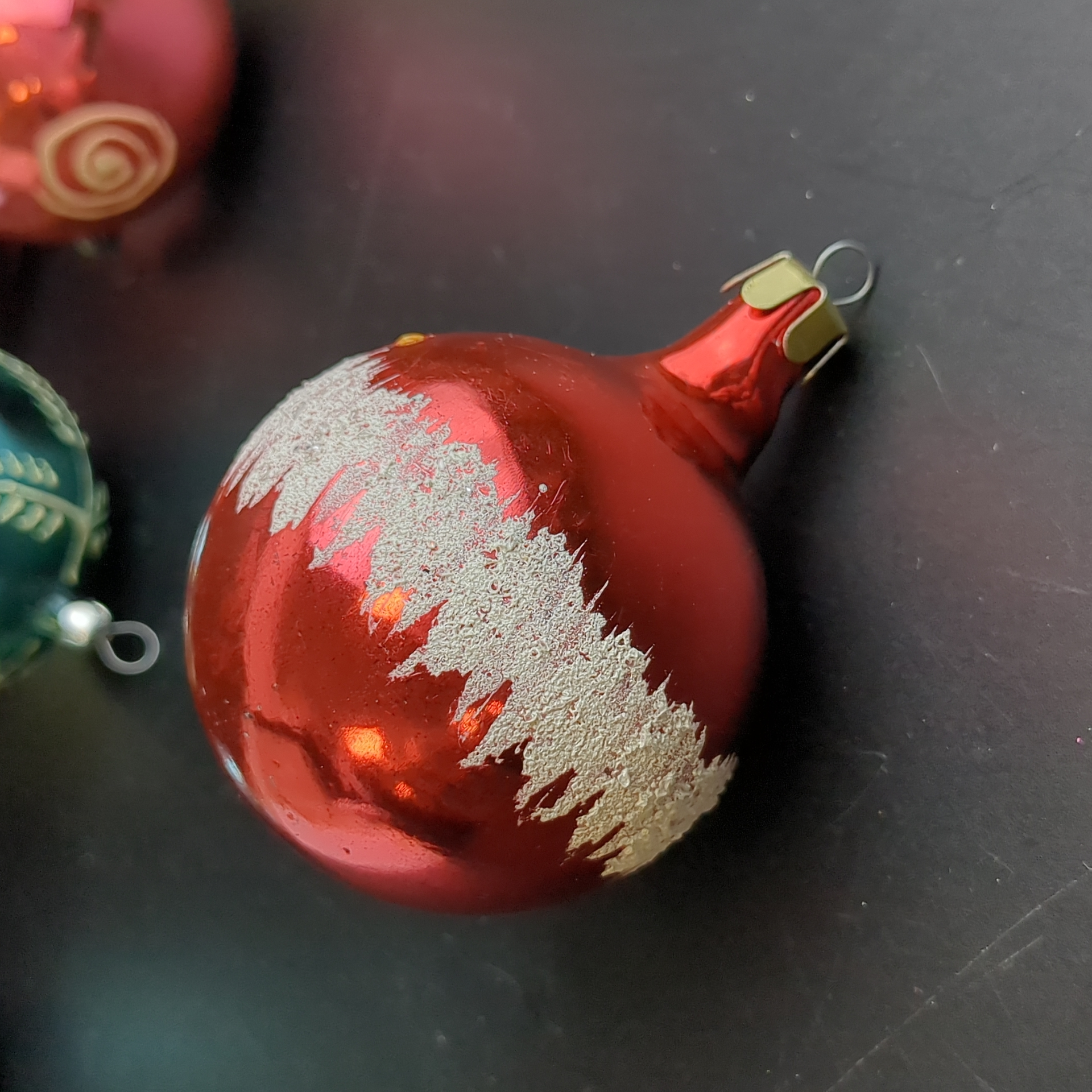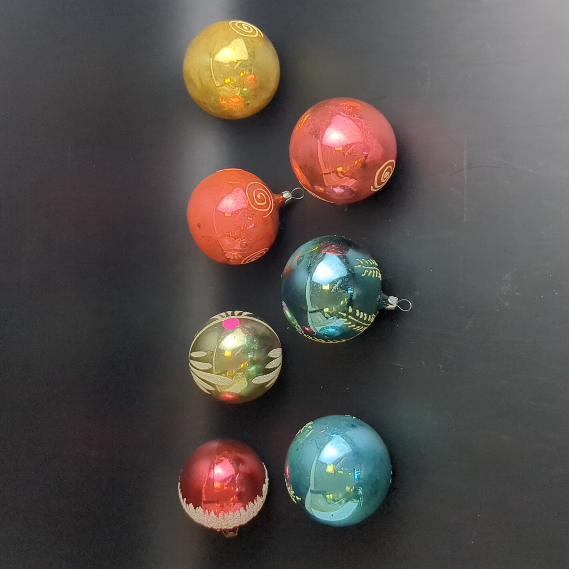 Ёлочные игрушки набор из 7 шариков, стекло, роспись, узоры, подвесные, винтаж СССР 1970-1990 гг. Состояние и комплектация на фото. Винтажные шарики на ёлку времён СССР. Ёлочные украшения в ретро стиле.