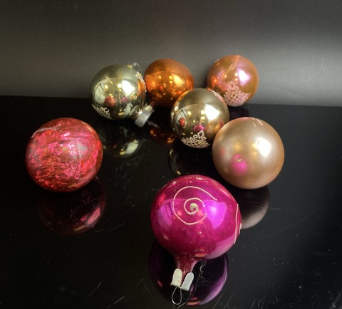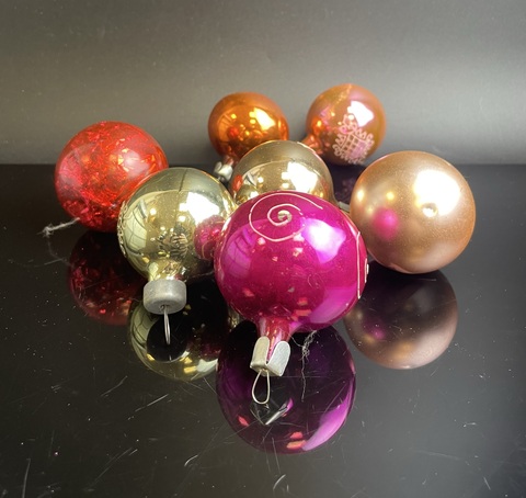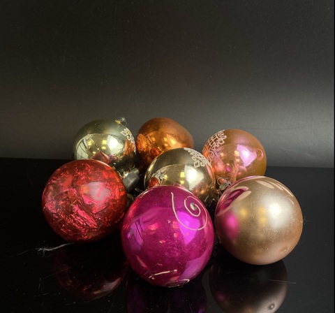 Ёлочные игрушки набор из 7 штук маленьких разных шариков, стекло, подвесные, винтаж СССР 1970-1990 гг