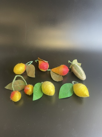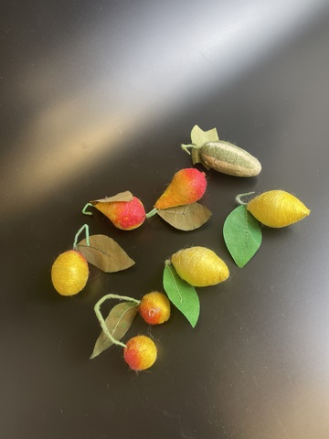 Ёлочные игрушки набор из 7 штук папье-маше, груша, лимон, огурец, черешня, винтаж СССР 1950-1980 гг. Комплектация и состояние на фото
