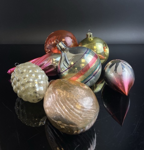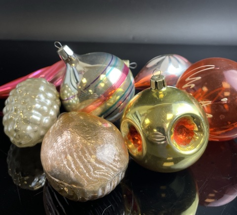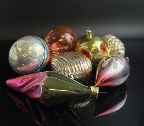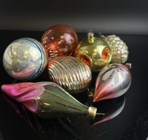 Ёлочные игрушки набор из 7 штук разных шарики, шишка, сосульки, стекло, подвесные, винтаж СССР 1960-1980 гг