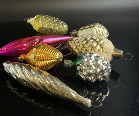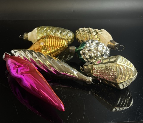 Ёлочные игрушки набор из 7 штук, шишки, сосульки, малинка и др, стекло, подвесные, винтаж СССР 1960-1980 гг