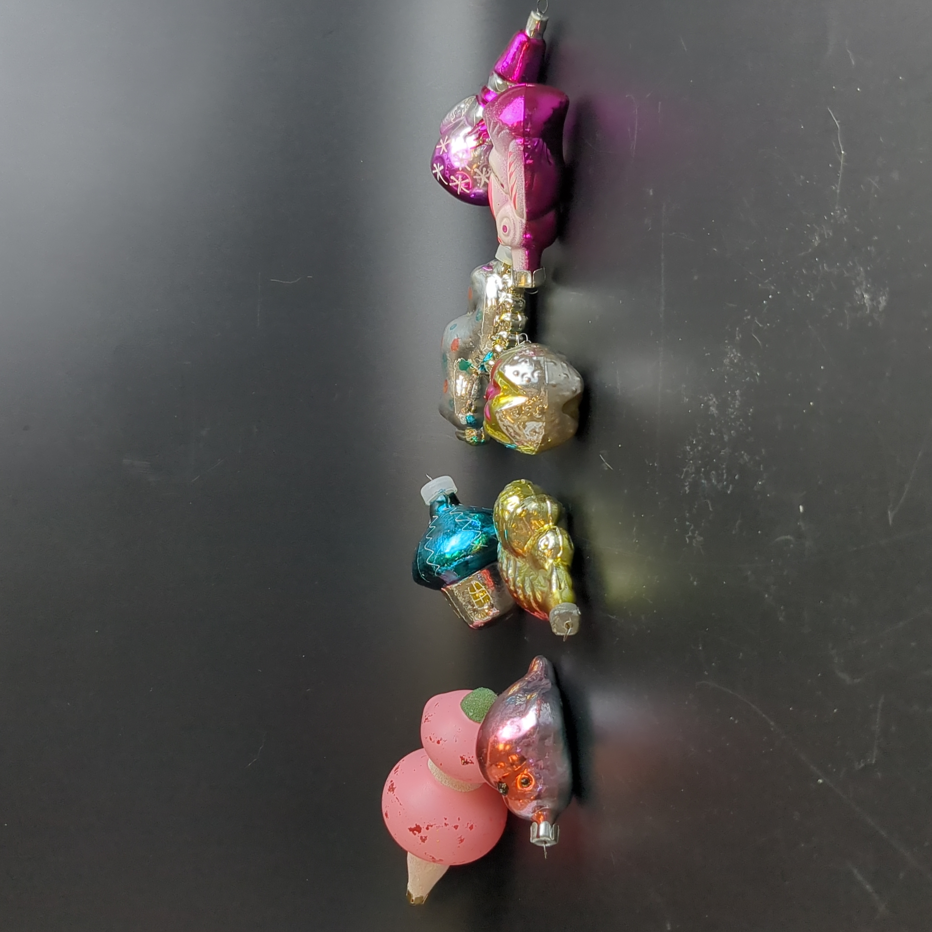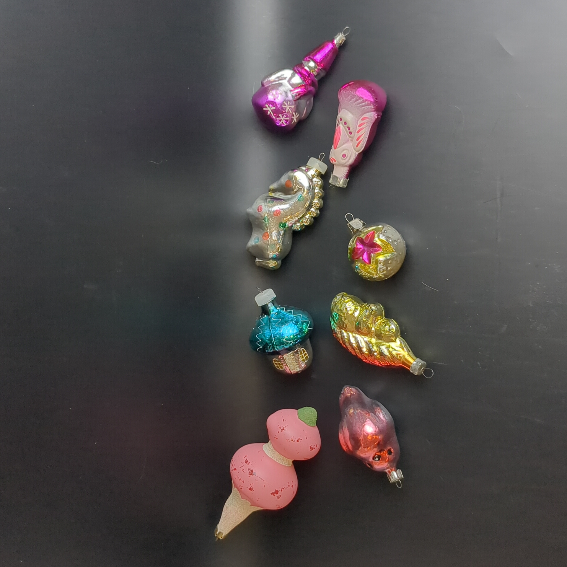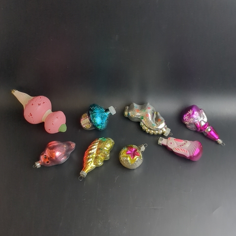 Ёлочные игрушки набор из 8 разных чипполино, конь, избушка, снеговик, белочка и др, стекло, роспись, узоры, подвесные, винтаж СССР 1960-1990 гг