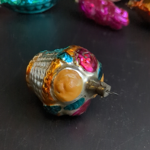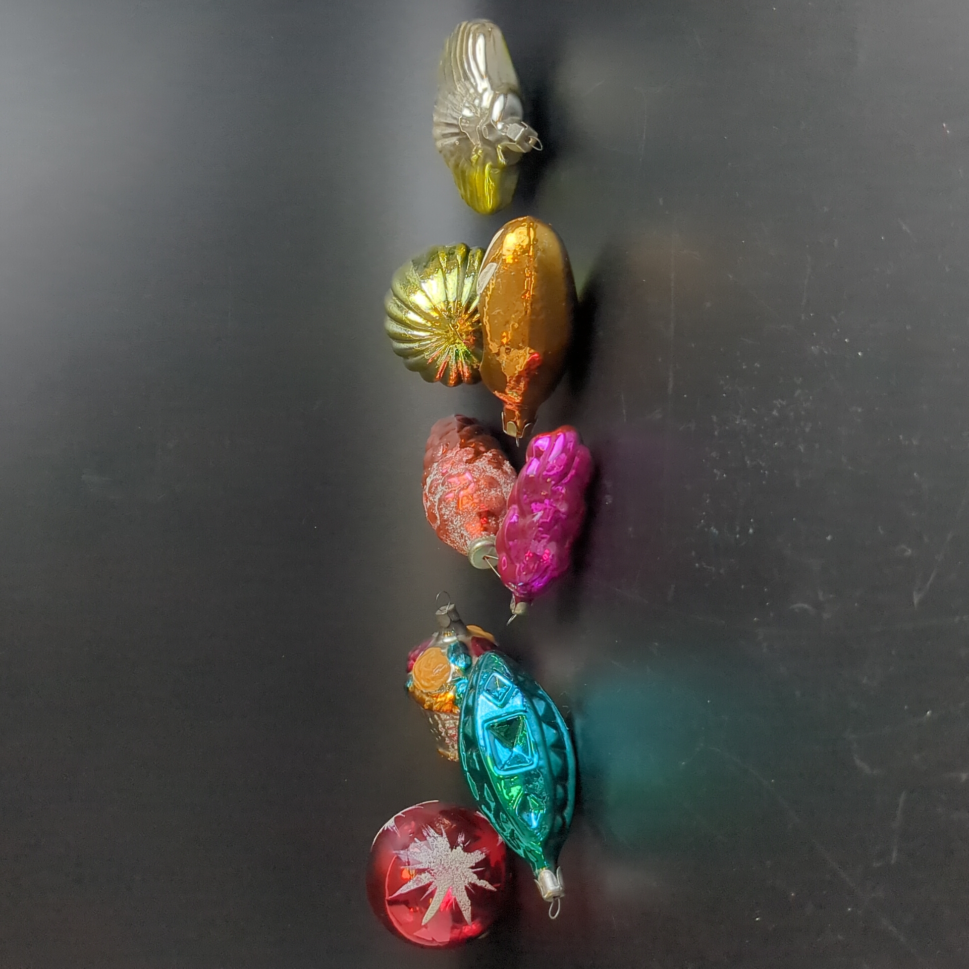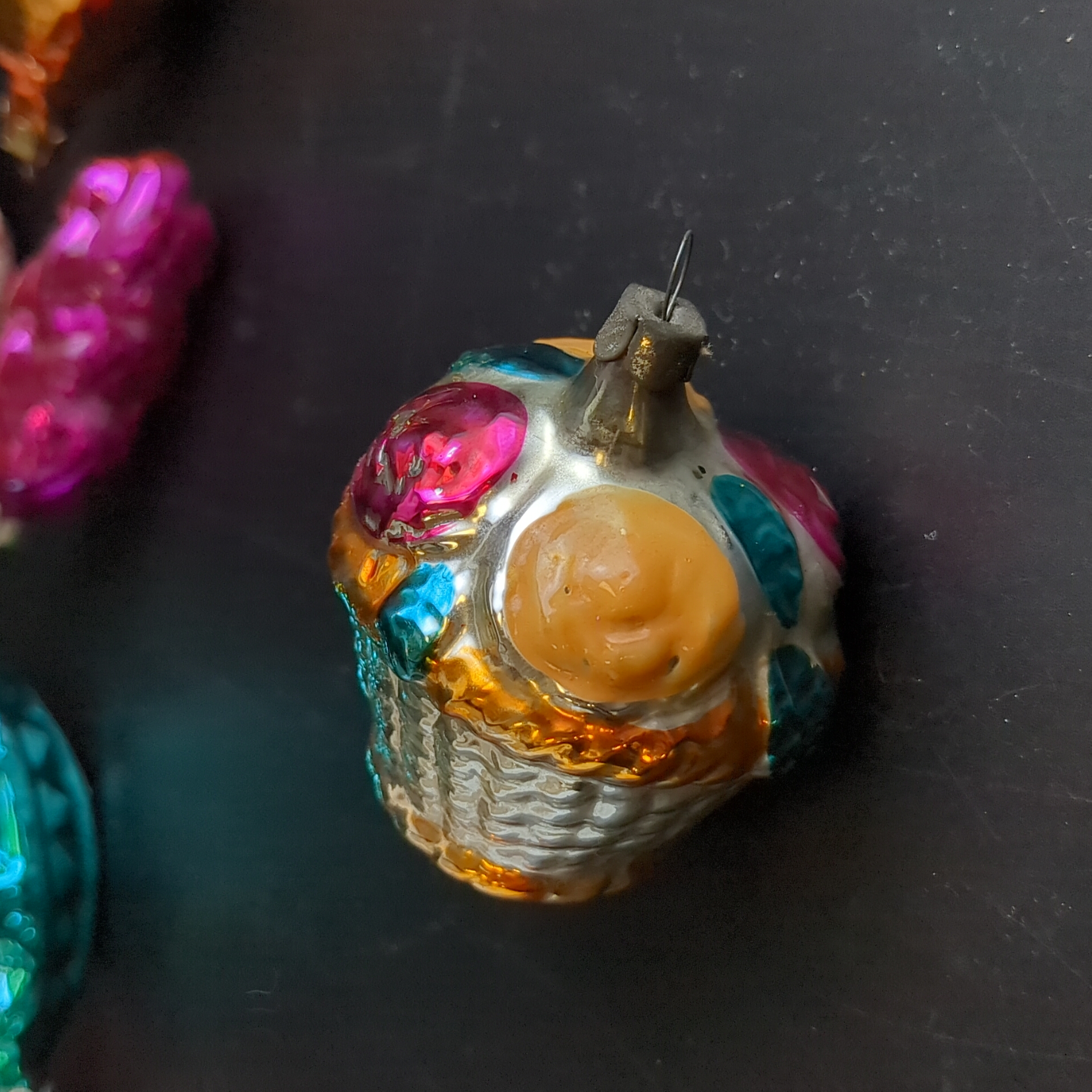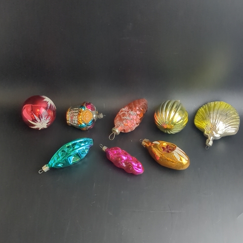 Ёлочные игрушки набор из 8 разных ракушка, кексик, медальон, шарики и др, стекло, роспись, узоры, подвесные, винтаж СССР 1960-1990 гг
