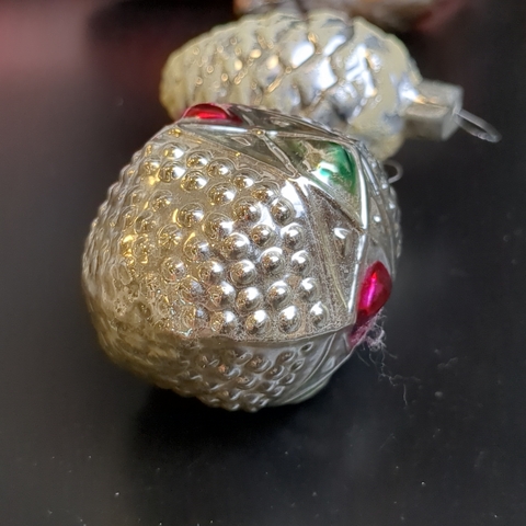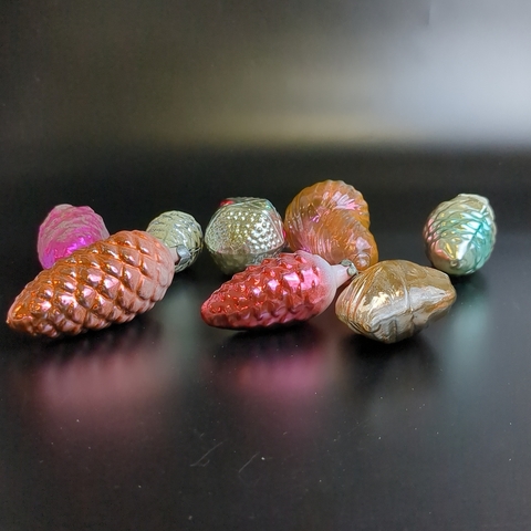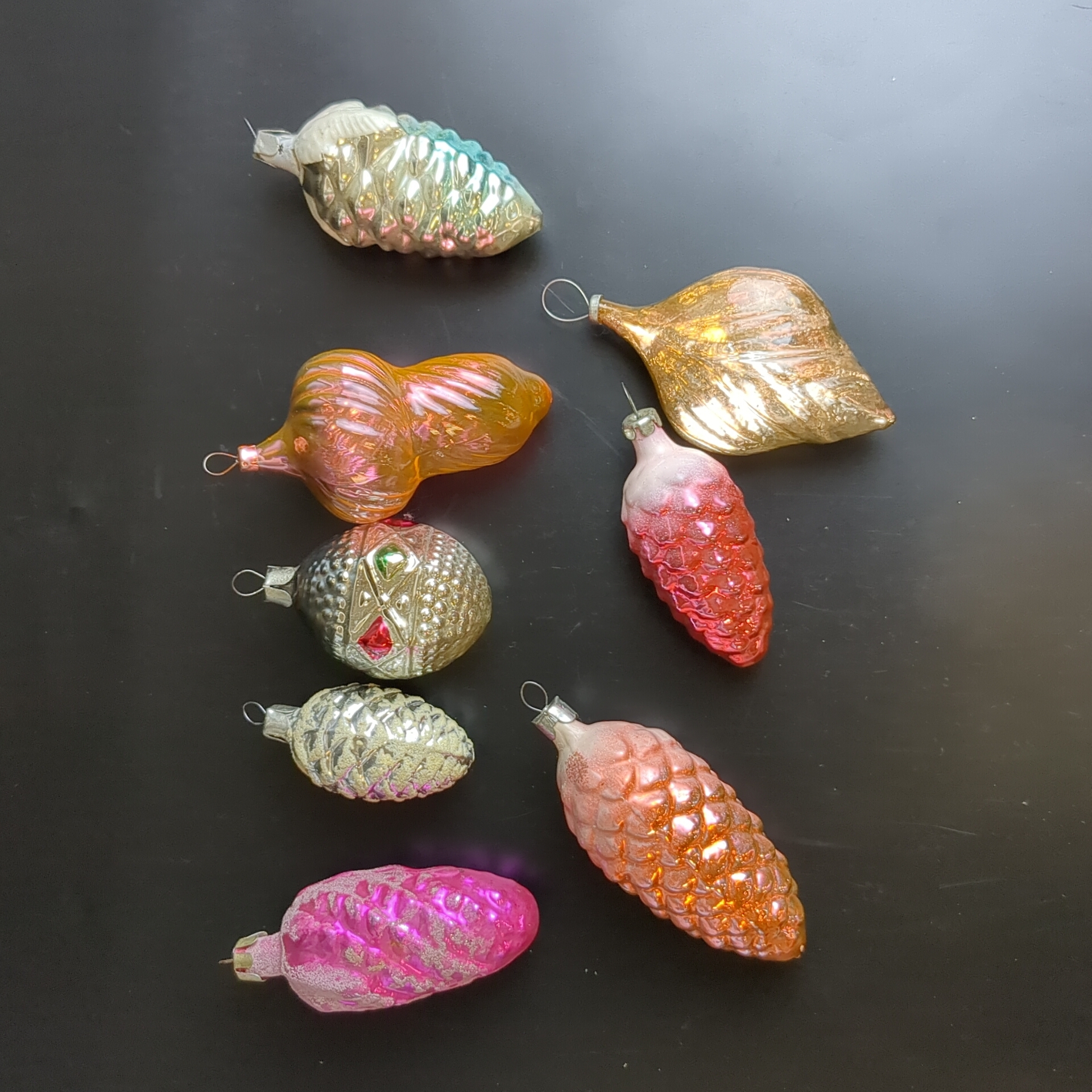 Ёлочные игрушки набор из 8 разных шишки, листики, фонарик,стекло, подвесные, винтаж СССР 1960-1980 гг