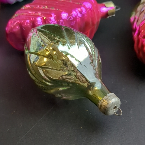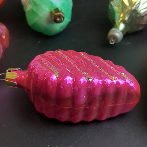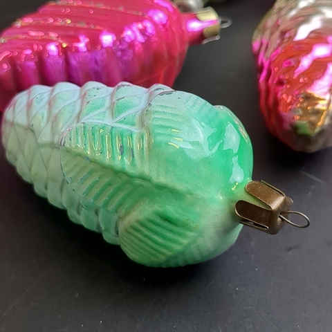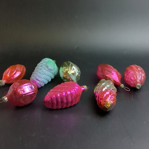 Ёлочные игрушки набор из 8 разных шишки, шарики и др, стекло, подвесные, яркая роспись, винтаж СССР 1960-1980 гг