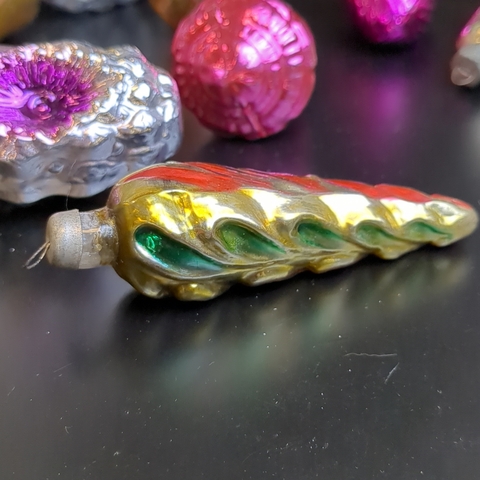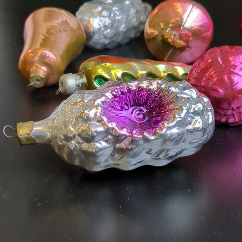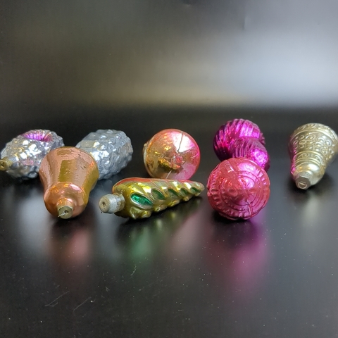 Ёлочные игрушки набор из 8 разных штук колокольчики, фонарики, сосульки и др, стекло, подвесные, СССР 1960-1980 гг
