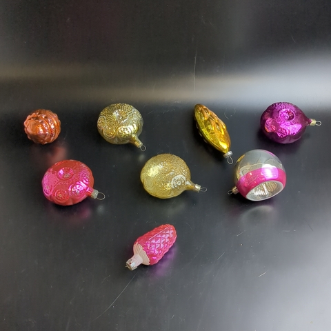 Ёлочные игрушки набор из 8 разных штук, медальоны, сосулька,и др, стекло, подвесные, винтаж времён СССР 1960-1980 гг. Советские ёлочные игрушки и украшения. Состояние и комплектация на фото.