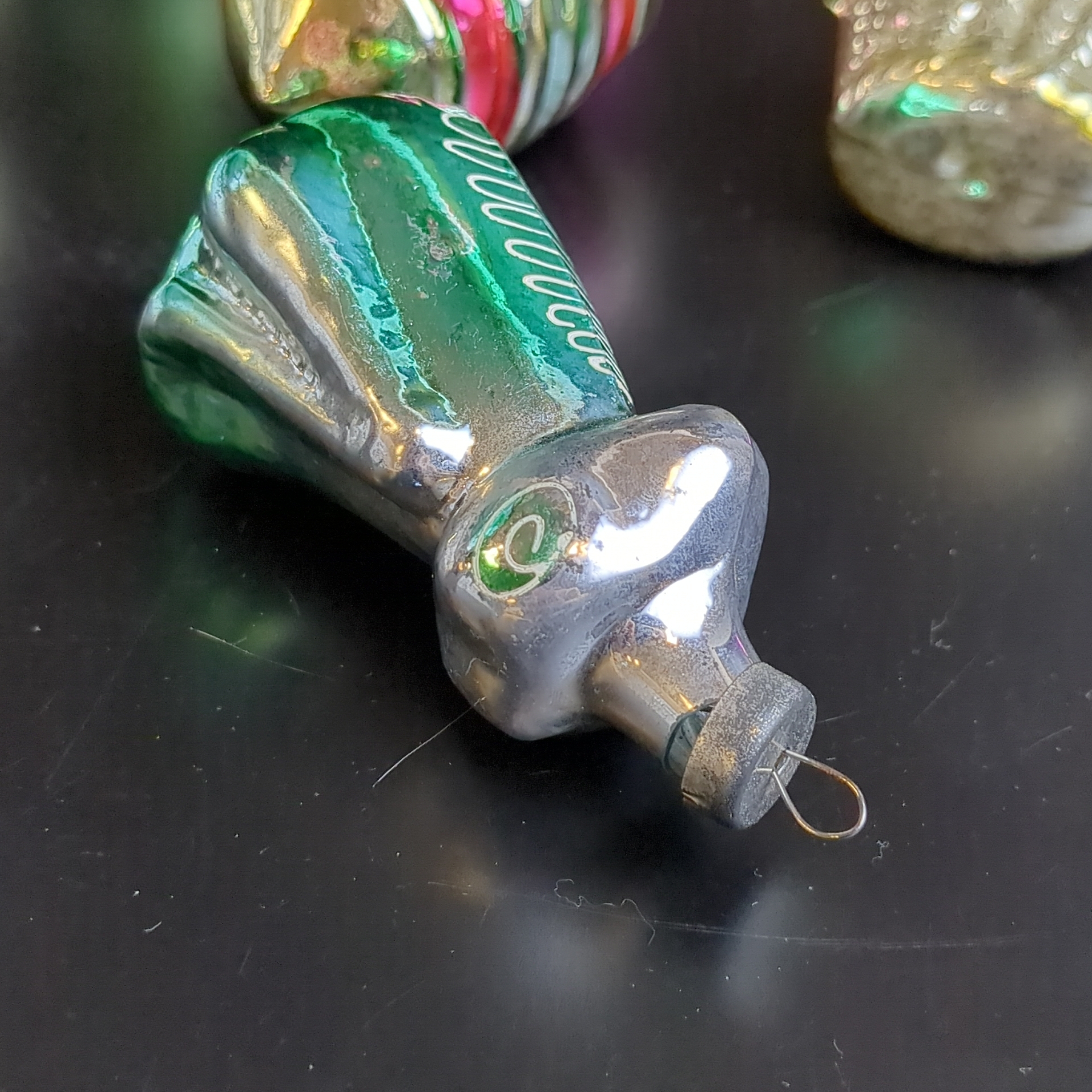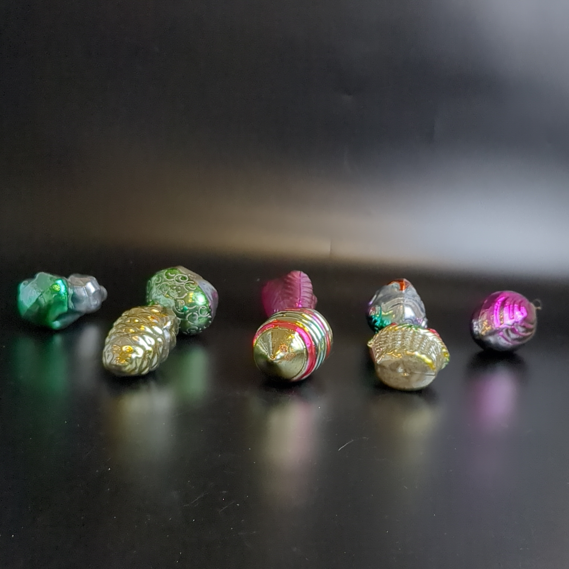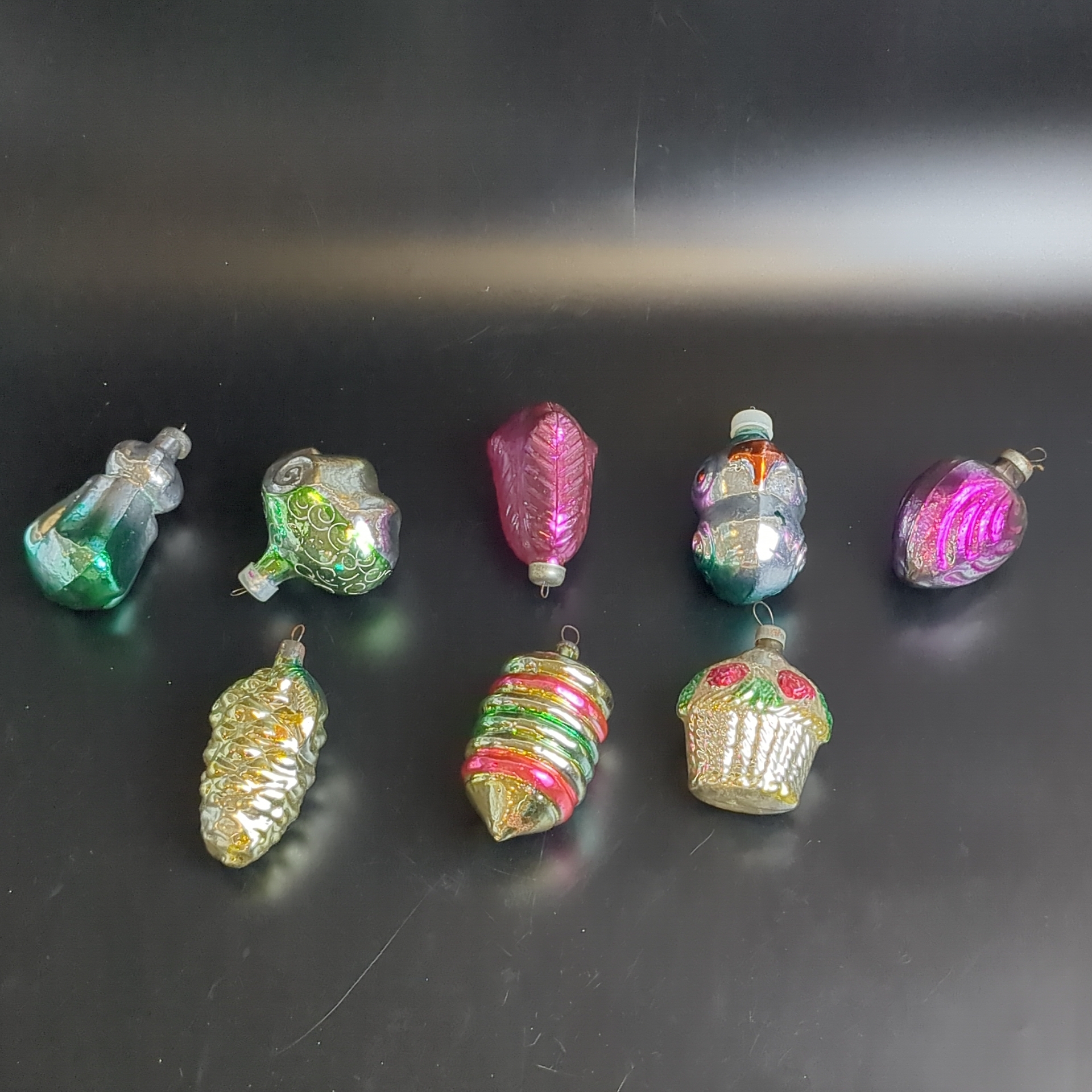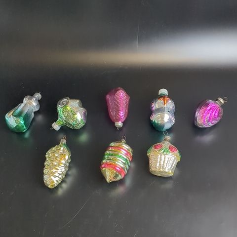 Ёлочные игрушки набор из 8 разных штук, попугай, кексик, кузнечик и др, стекло, подвесные, ручная роспись, винтаж СССР 1970-1990 гг