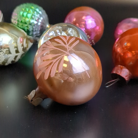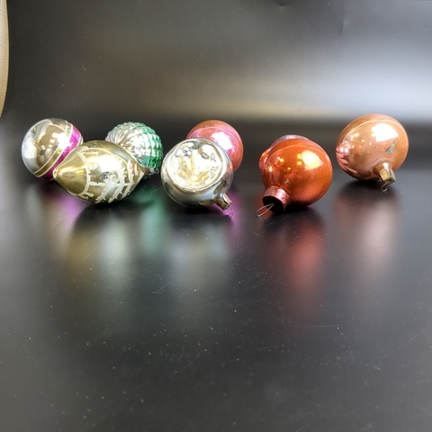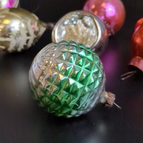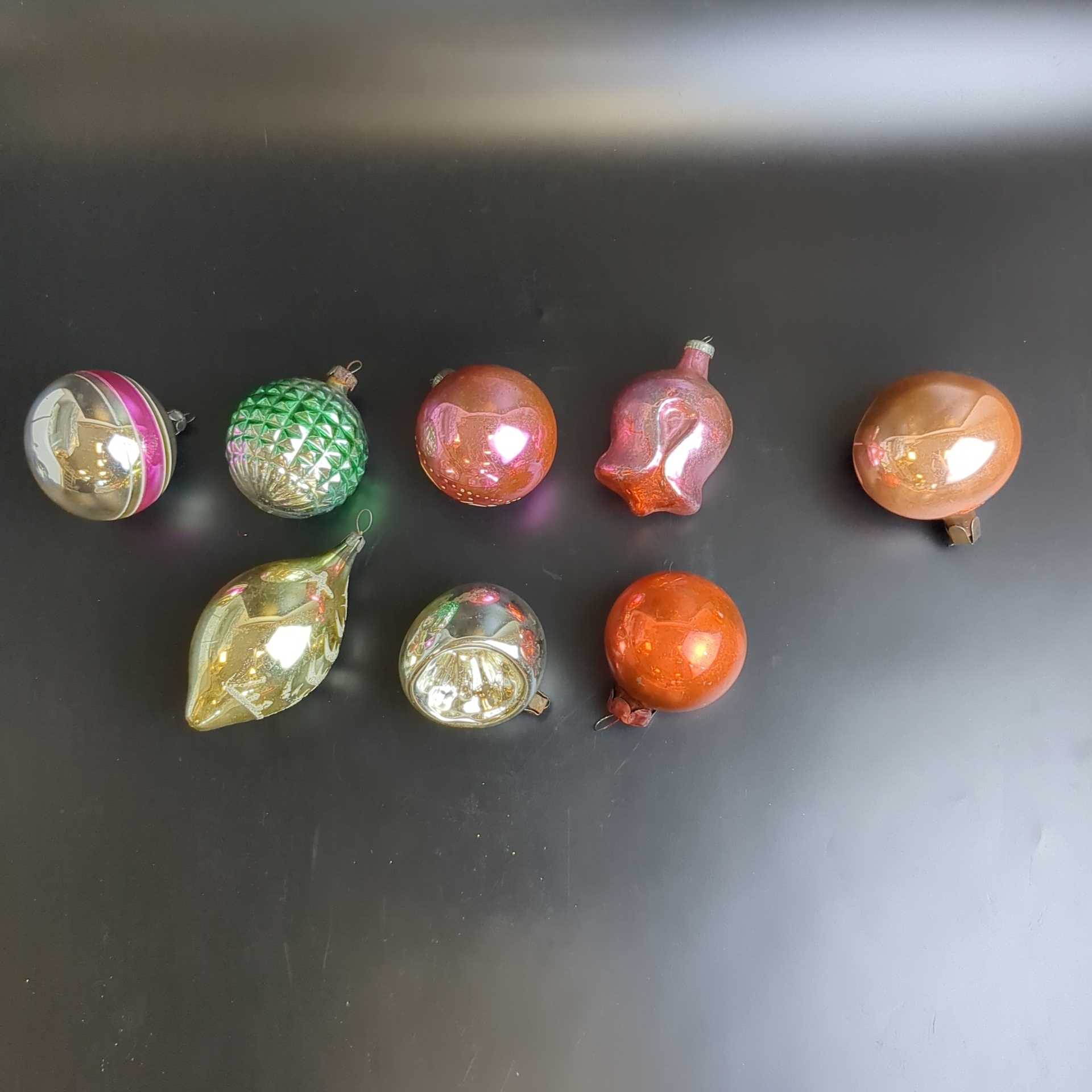 Ёлочные игрушки набор из 8 разных штук шарики, стекло, подвесные, винтаж СССР 1960-1980 гг