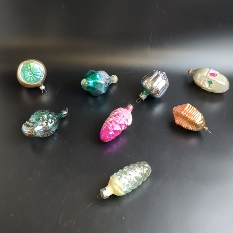 Ёлочные игрушки набор из 8 разных штук шишки, фонарики и др, стекло, подвесные, винтаж времён СССР 1950-1980 гг. Советские ёлочные игрушки и украшения. Состояние и комплектация на фото.