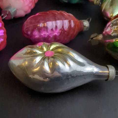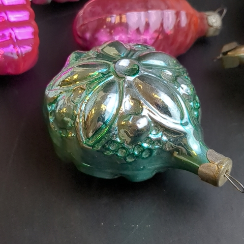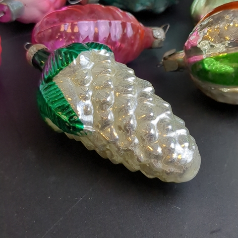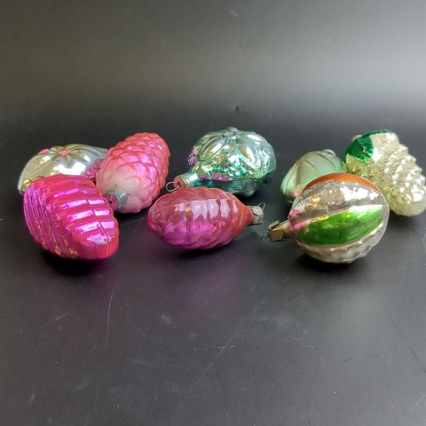Ёлочные игрушки набор из 8 разных штук шишки, листики, шарики, стекло, подвесные, яркие, винтаж СССР 1960-1980 гг
