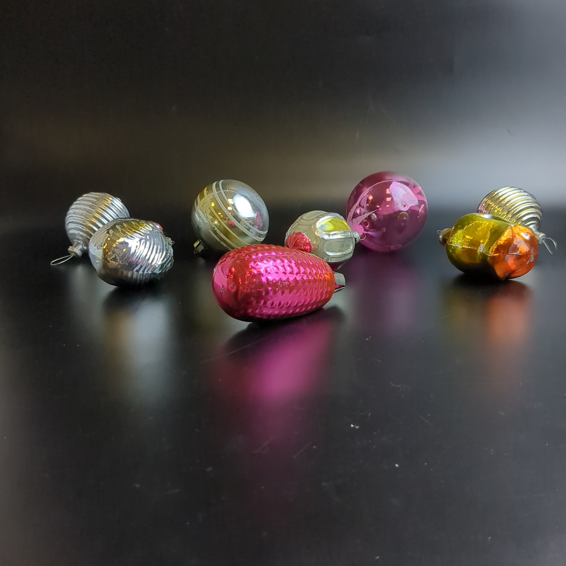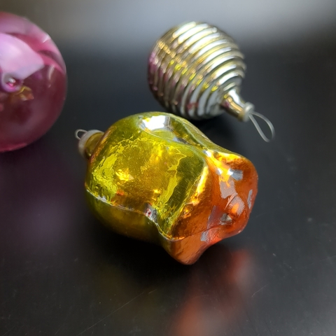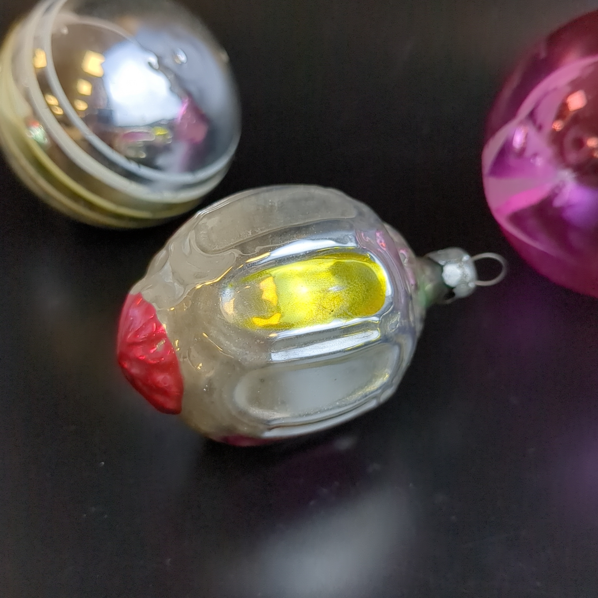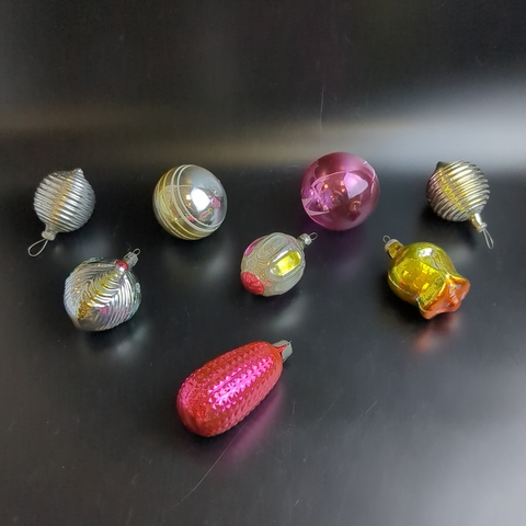 Ёлочные игрушки набор из 8 разных штук, стрекоза, тюльпан и др, стекло, подвесные, винтаж времён СССР 1960-1980 гг. Советские ёлочные игрушки и украшения. Состояние и комплектация на фото, могут присутствовать незначительные неровности и сколы, закрытые металлическим подвесом (под подвесом).