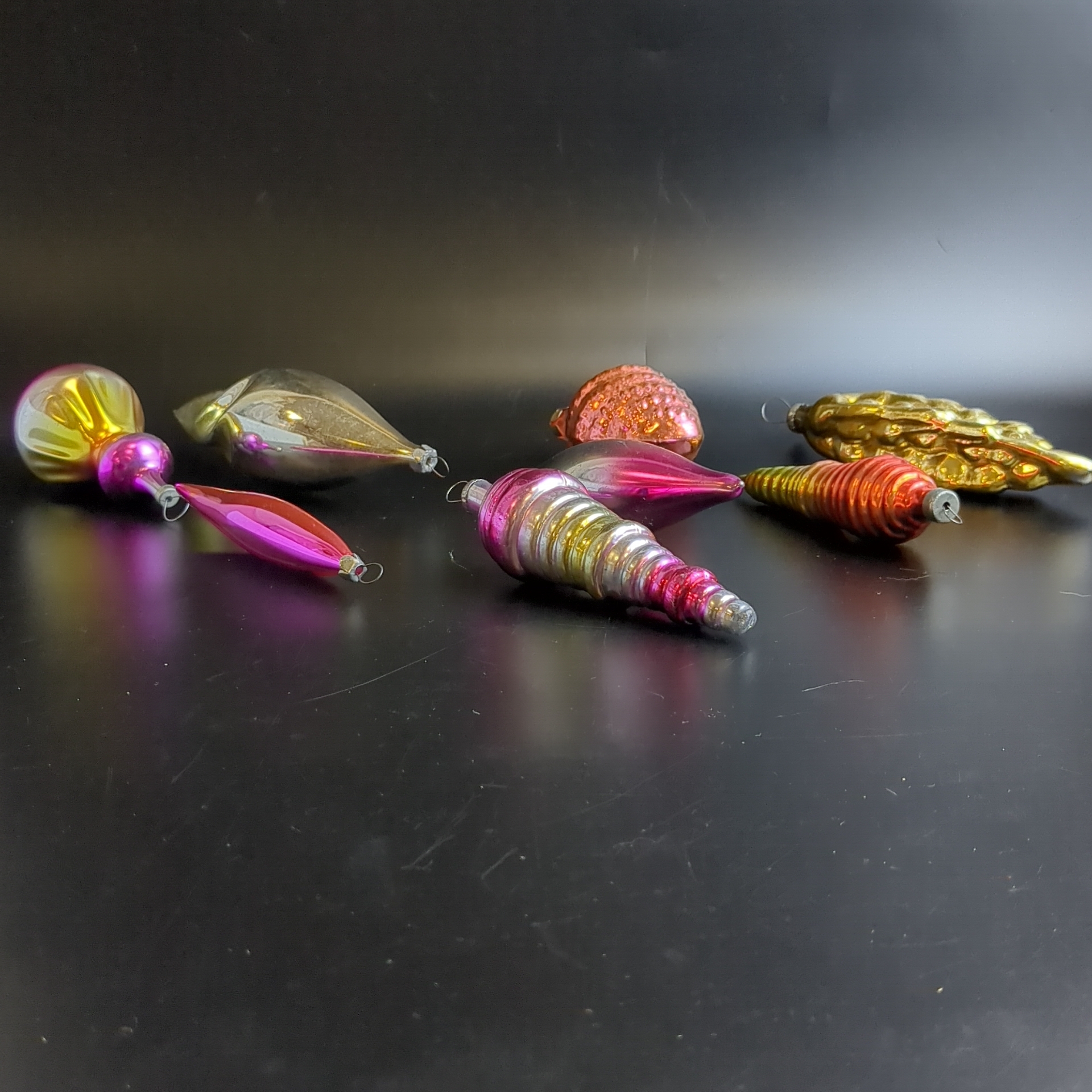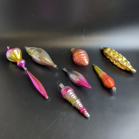Ёлочные игрушки набор из 8 разных ярких и красивых сосулек, стекло, подвесные, винтаж времён СССР 1960-1980 гг.Советские ёлочные игрушки и украшения. Состояние и комплектация на фото, могут присутствовать незначительные неровности и сколы, закрытые металлическим подвесом (под подвесом).