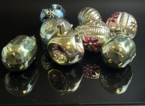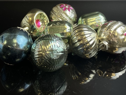 Ёлочные игрушки набор из 8 штук разные небольшие, шарики, фонарики, стекло, подвесные, винтаж СССР 1960-1980 гг
