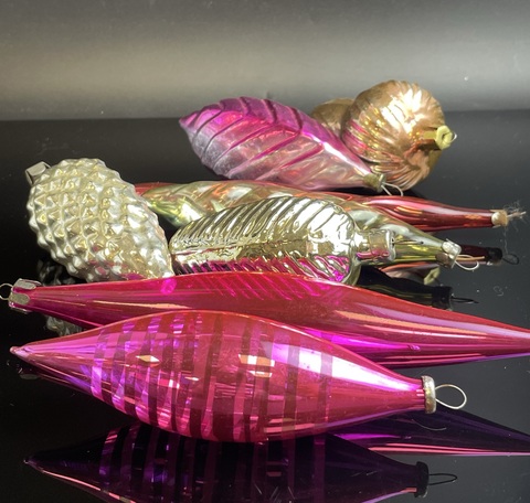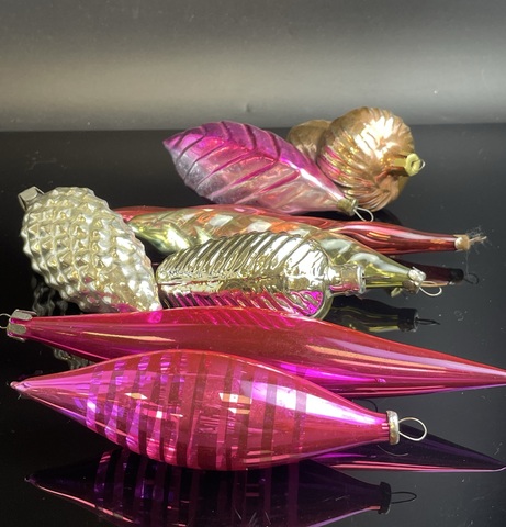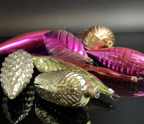 Ёлочные игрушки набор из 8 штук разные, сосульки, шишки и др, стекло, подвесные, яркие, роспись, винтаж СССР 1960-1980 гг