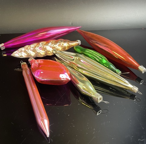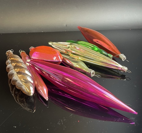Ёлочные игрушки набор из 8 штук разных сосулек, стекло, подвесные, яркие, винтаж СССР 1960-1980 гг