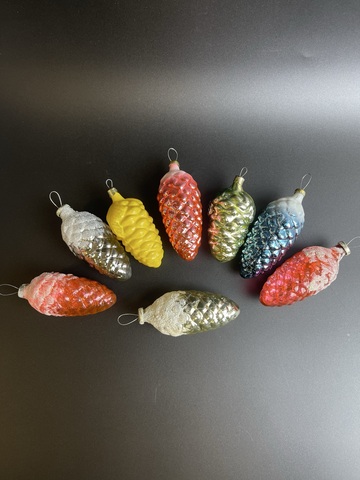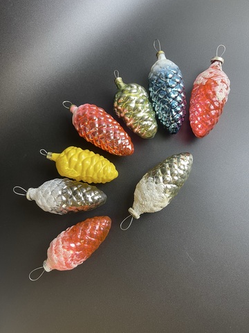 Ёлочные игрушки набор из 8 штук шишки стекло, винтаж СССР 1960-1990 гг. Состояние и комплектация на фото