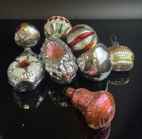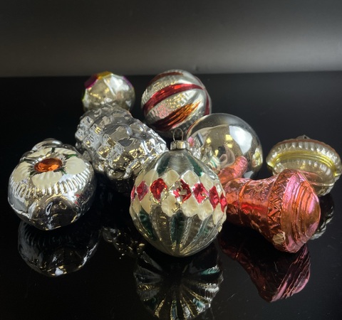 Ёлочные игрушки набор из 8 ярких штук колокольчик, кексик, шарики, фонарики, стекло, подвесные, винтаж СССР 1960-1980 гг