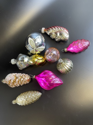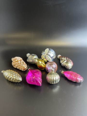 Ёлочные игрушки набор из 9 разных, мишка, белочка с орехом из сказки о царе Салтане, шишки, листик и шарики, стекло, винтаж СССР 1960-1990 гг. Комплектация и состояние на фото