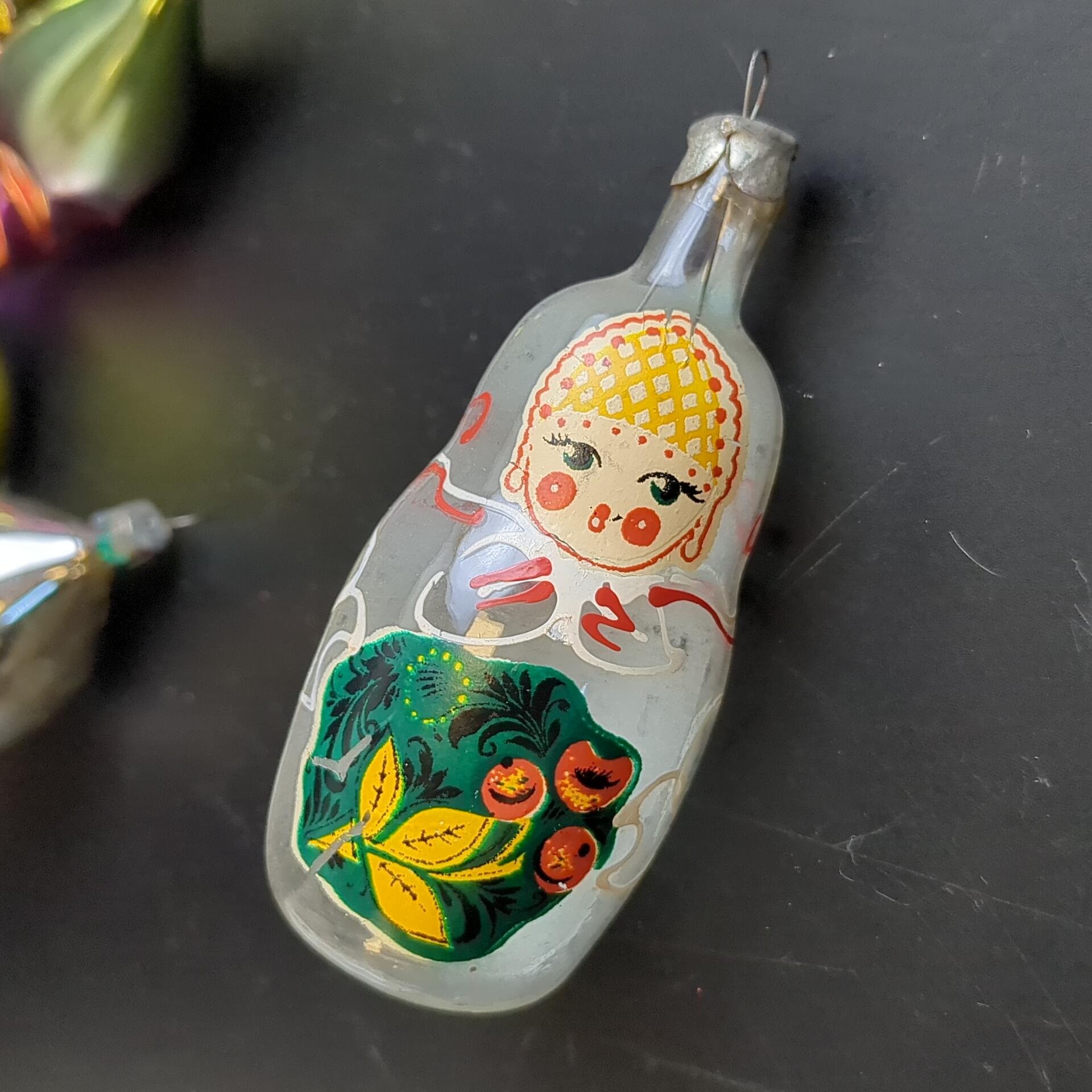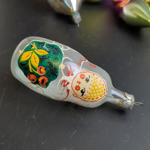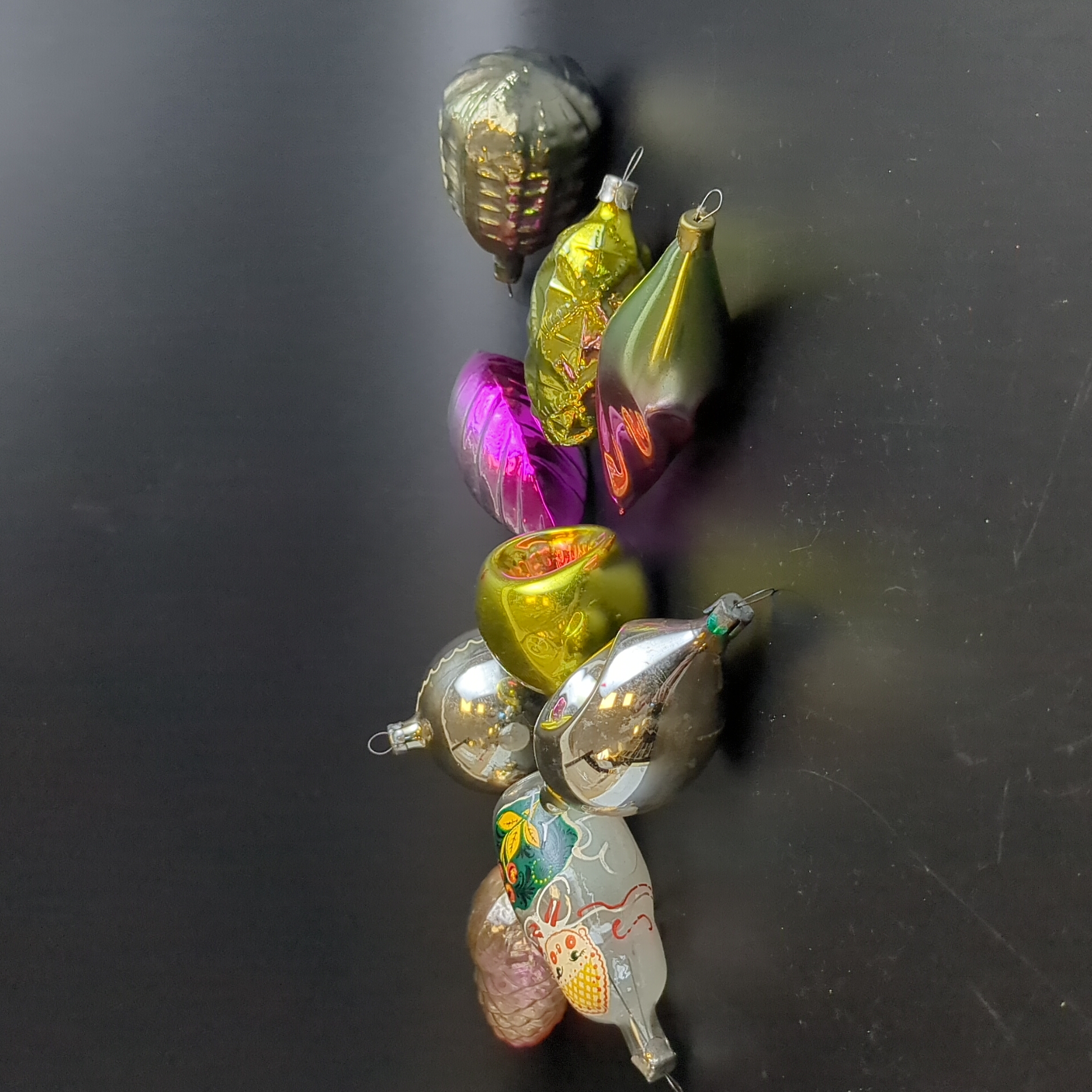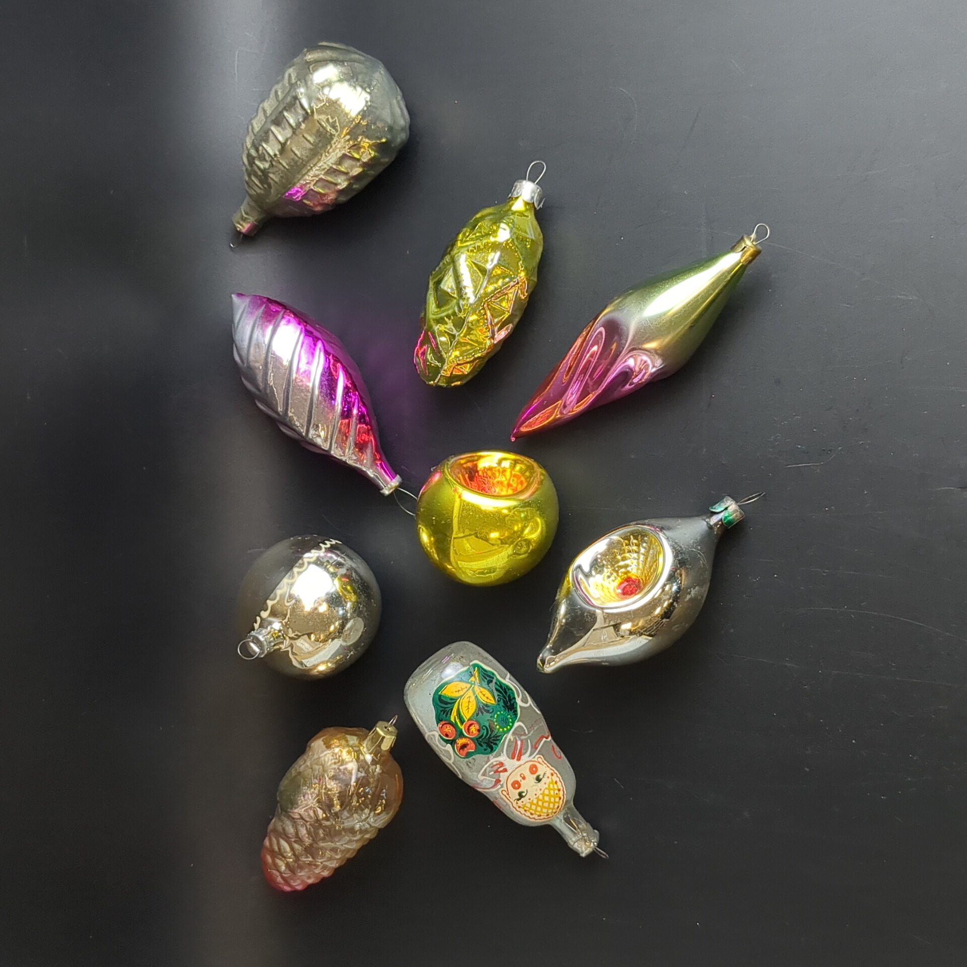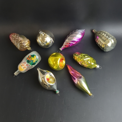 Ёлочные игрушки набор из 9 разных шишки, матрёшка, шарики и др, стекло, роспись, узоры, подвесные, винтаж СССР 1960-1990 гг
