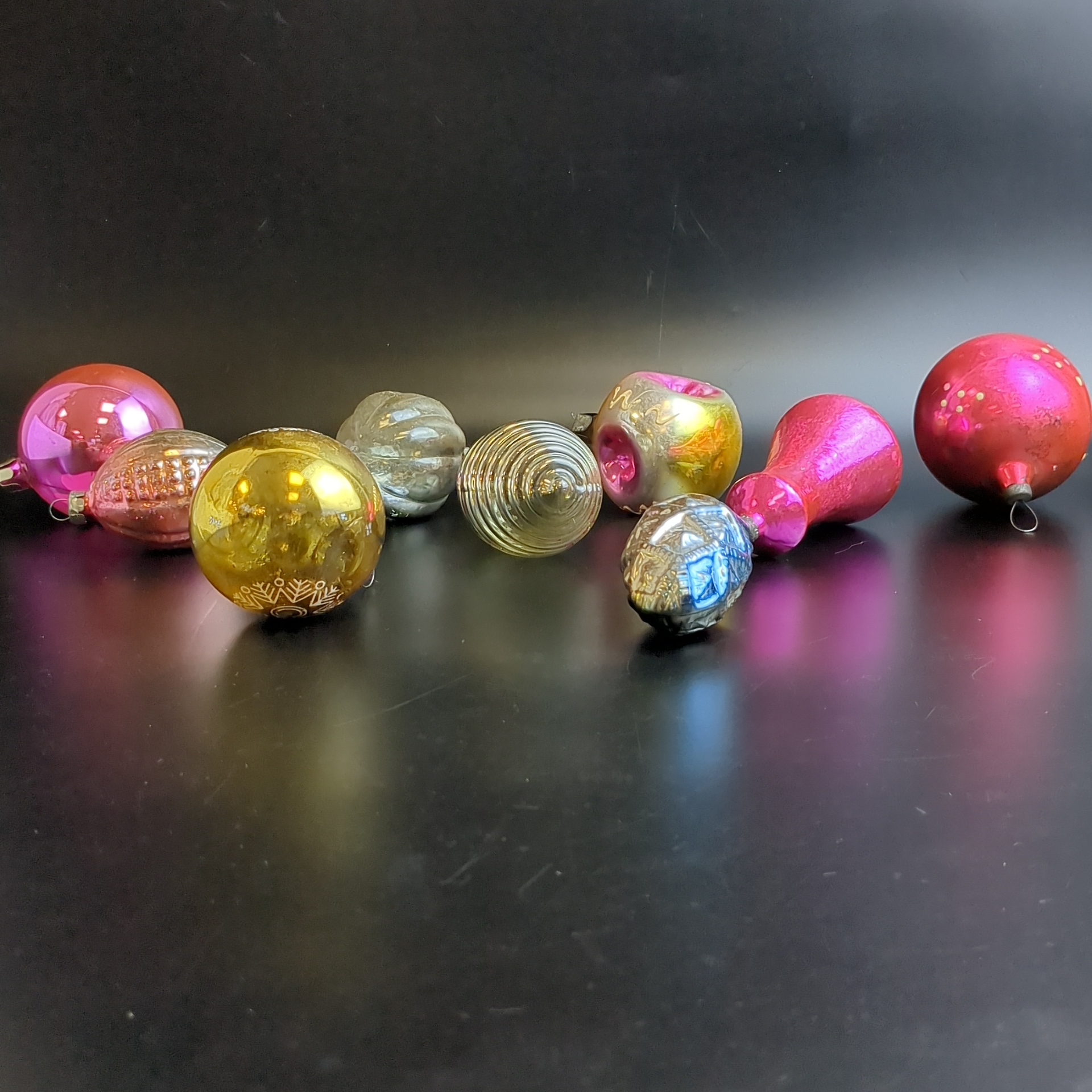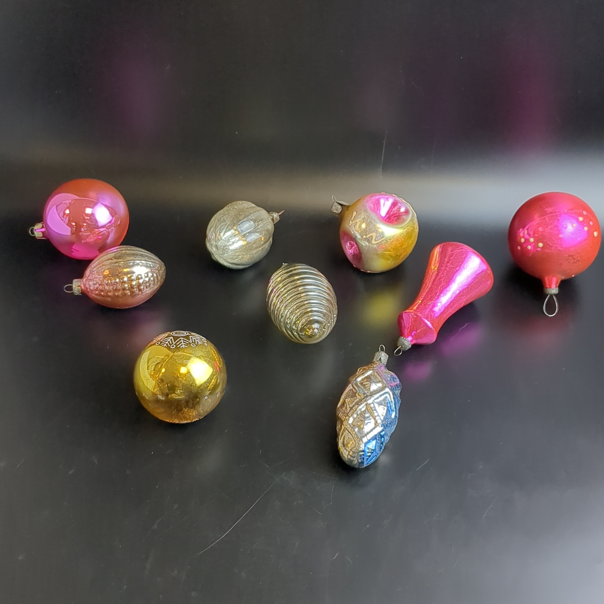 Ёлочные игрушки набор из 9 разных штук, колокольчик, шарики др, стекло, подвесные, винтаж времён СССР 1960-1980 гг. Советские ёлочные игрушки и украшения. Состояние и комплектация на фото.
