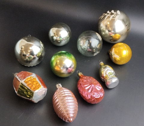 Ёлочные игрушки набор из 10 разных штук, шарики, фонарики, стекло, роспись, узоры, подвесные, винтаж СССР 1960-1990 гг. Состояние и комплектация на фото, присутствует отсутствие краски. Винтажные шарики на ёлку времён СССР. Ёлочные украшения в ретро стиле.
