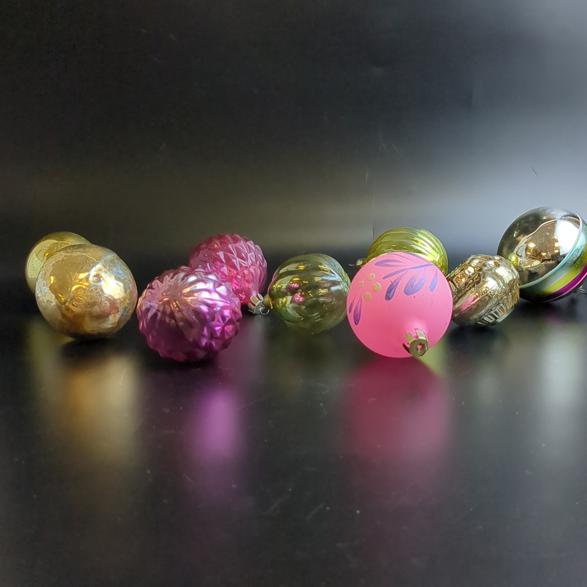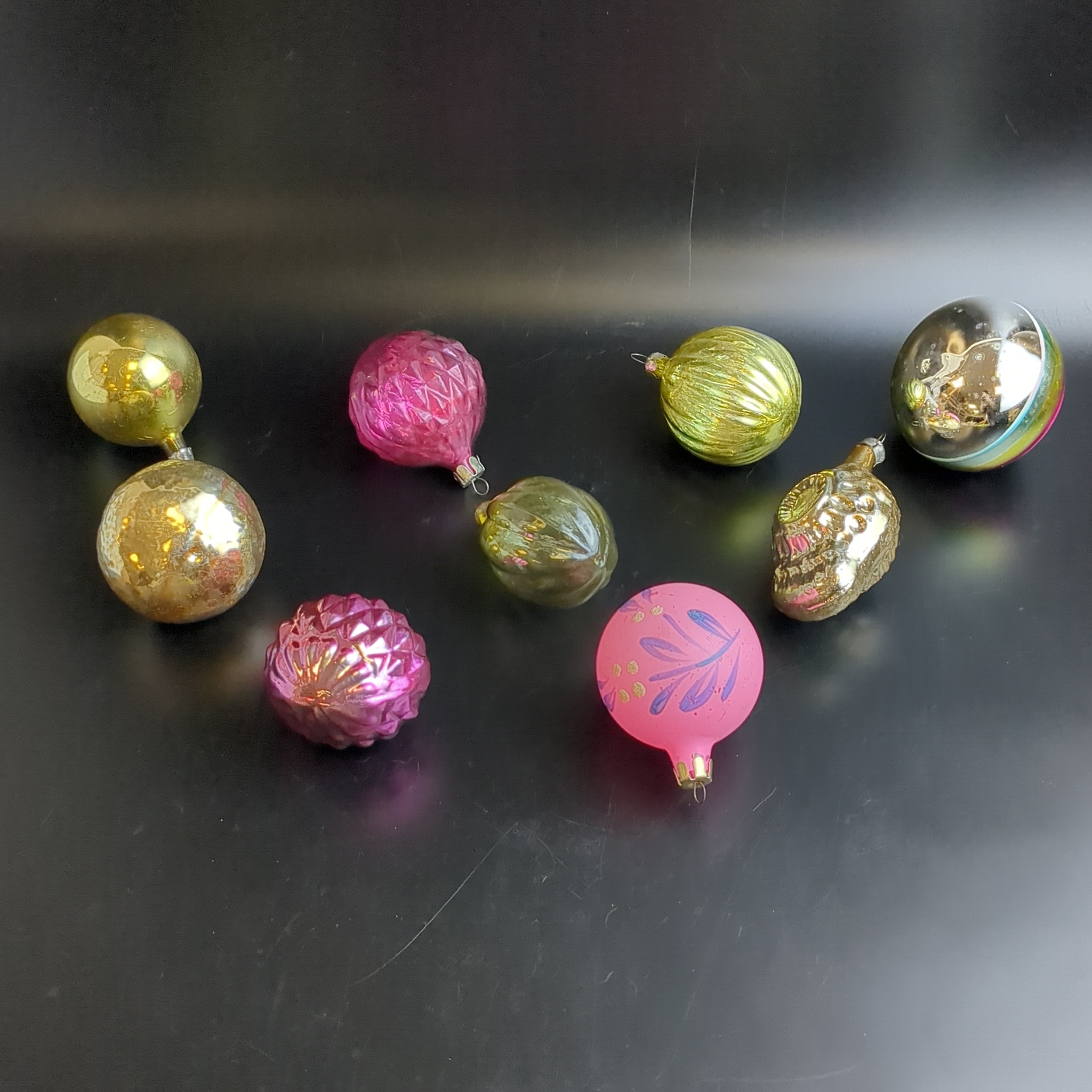 Ёлочные игрушки набор из 9 разных штук, шарики, стекло, подвесные, винтаж СССР 1960-1980 гг. Советские ёлочные игрушки и украшения. Состояние и комплектация на фото.
