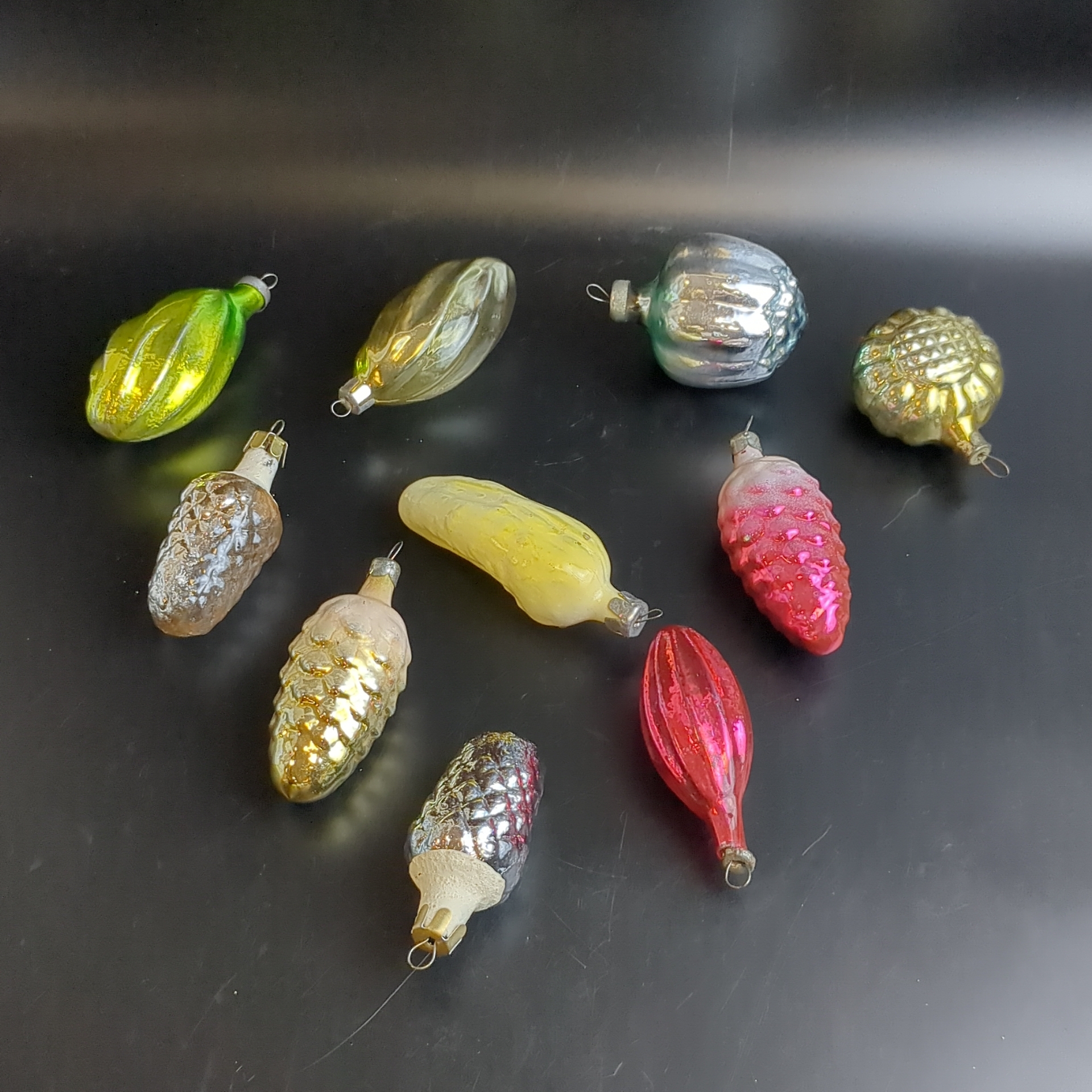 Ёлочные игрушки набор из 9 разных штук, сосульки, шарики, шишки и др, стекло, ручная роспись, подвесные, винтаж времён СССР 1960-1980 гг. Советские ёлочные игрушки и украшения. Состояние и комплектация на фото.