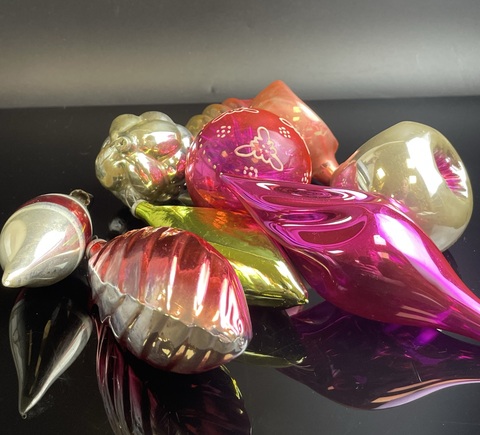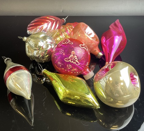 Ёлочные игрушки набор из 9 штук разные, фонарики, шарики, сосульки, стекло, подвесные, яркие, роспись, винтаж СССР 1960-1980 гг