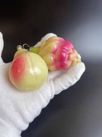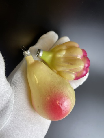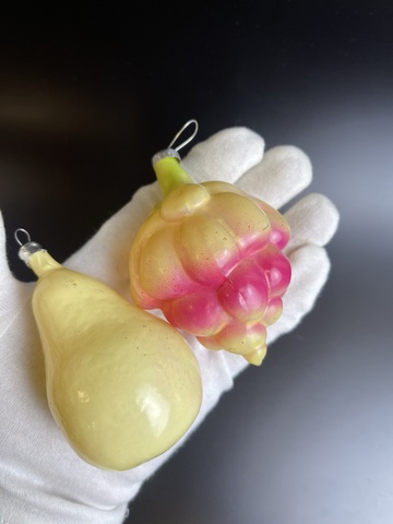 Ёлочные игрушки набор из двух штук виноград и груша, ретро, стекло, СССР 1940-1980 гг. Состояние на фото