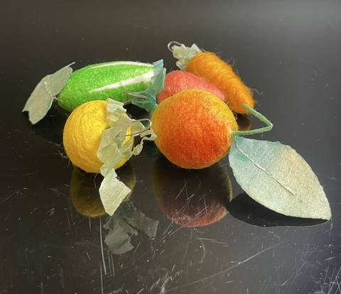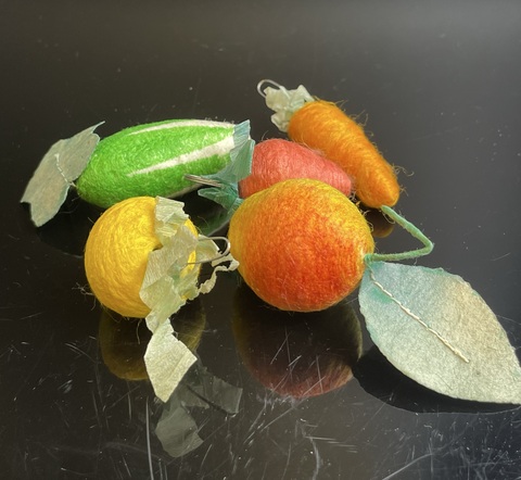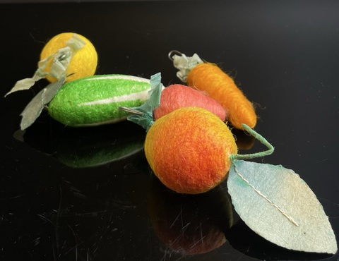 Ёлочные игрушки папье-маше, 5 штук набор, морковка, огурец, яблоко, клубника, винтаж СССР 1960-1980 гг