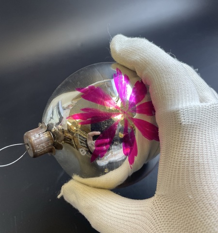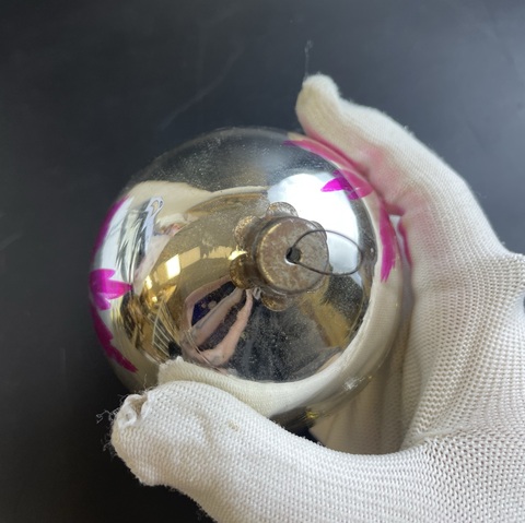 Ёлочный шар, толстое стекло, роспись, ГДР времён СССР, подвесной шар, винтаж СССР 1960-1980 гг