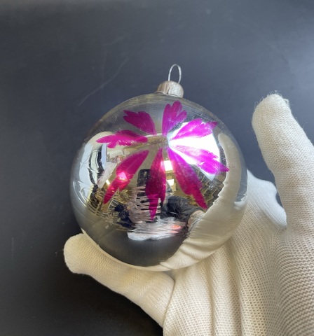 Ёлочный шар, толстое стекло, роспись, ГДР времён СССР, подвесной шар, винтаж СССР 1960-1980 гг. Состояние и комплектация на фото. Ёлочные украшения советского времени, детализированная яркая роспись, выполненная вручную.