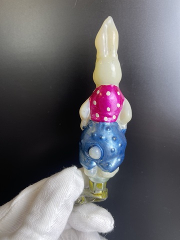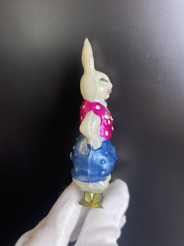 Заяц франт . Сказка «Доктор Айболит» Ёлочная игрушка СССР на прищепке. стекло. 1950 гг. Каталожная редкая.