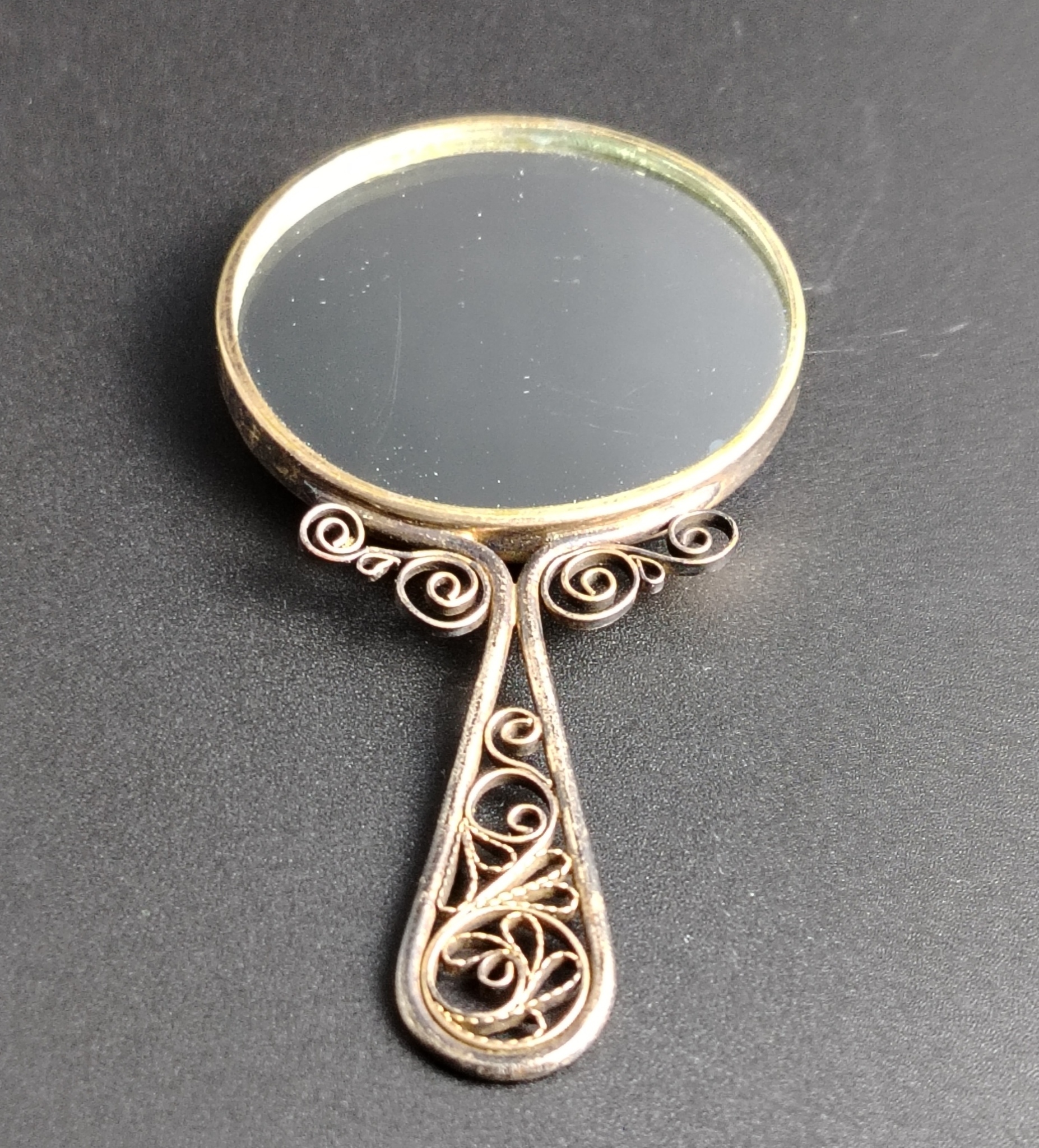 Зеркальце маленькое финифть, эмаль, пейзаж ручная роспись, скань, винтажное СССР 1960-1980 гг. Высота - 8.5 см, ширина - 4.3 см. Изящное зеркальце женское в сумочку. Незначительные следы использования - состояние на фото