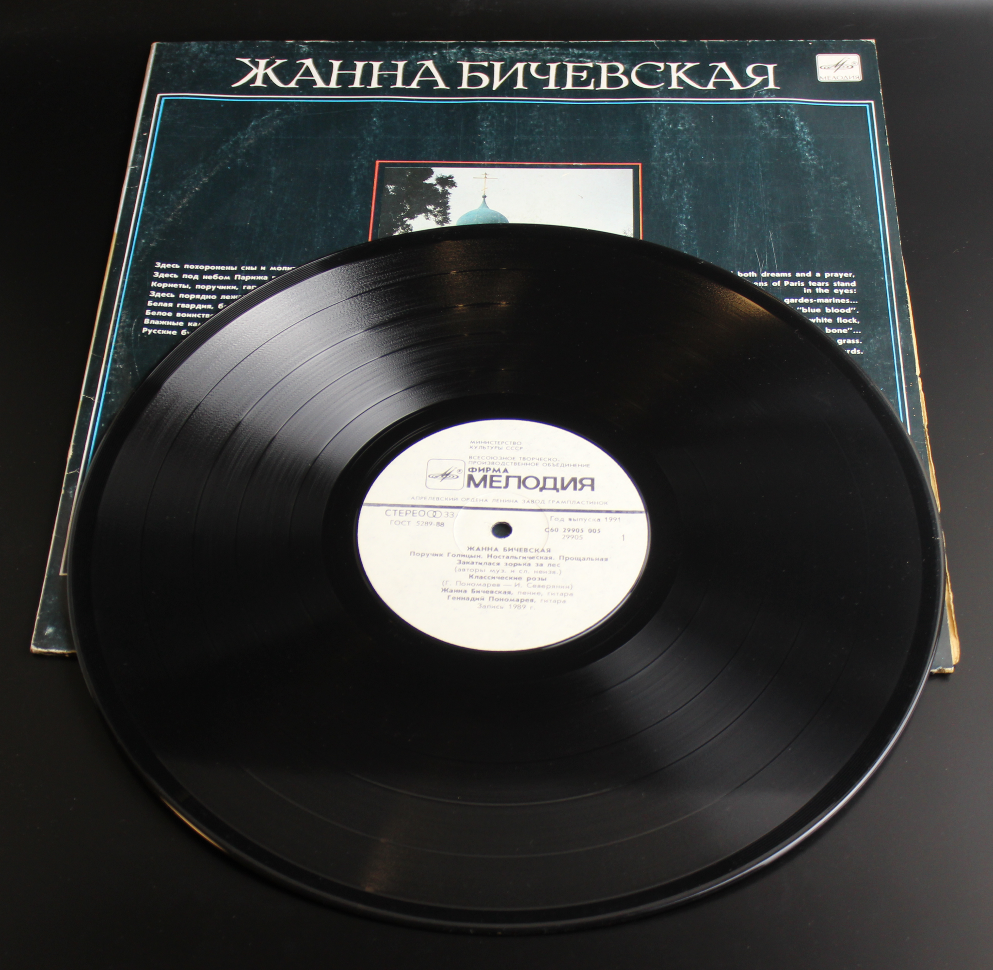 Жанна Бичевская виниловая пластинка 12 дюймов "Поручик Голицын. Ностальгическая. Прощальная...", СССР Мелодия 1989 год. Присутствуют незначительные следы использования