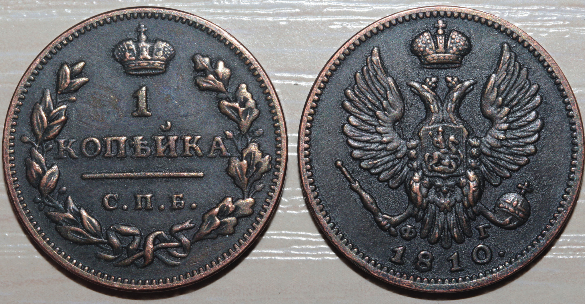 Жетон 1 копейка 1810 года Александр 1 СПБ ФГ копия монеты медь патина Копия