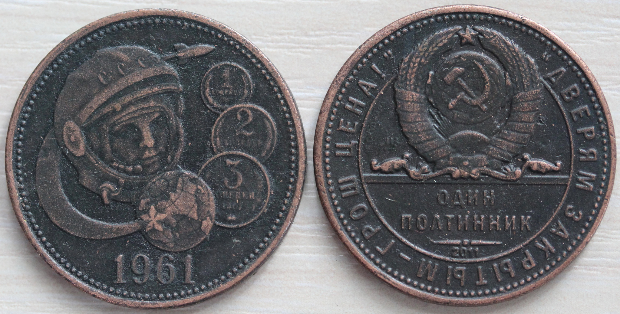 Жетон 1 полтинник (50 копеек) СССР 1961 года Гагарин Космос копия медь патина Копия