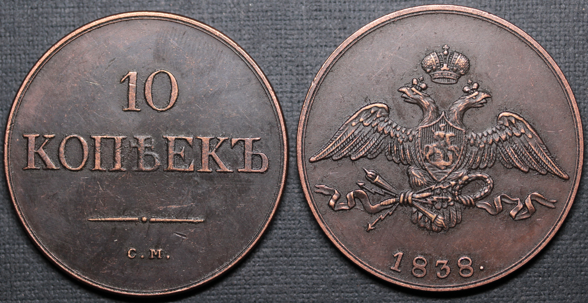 Жетон 10 копеек 1838 года СМ Николай 1 Российская империя Копия медной царской монеты медь патина Копия