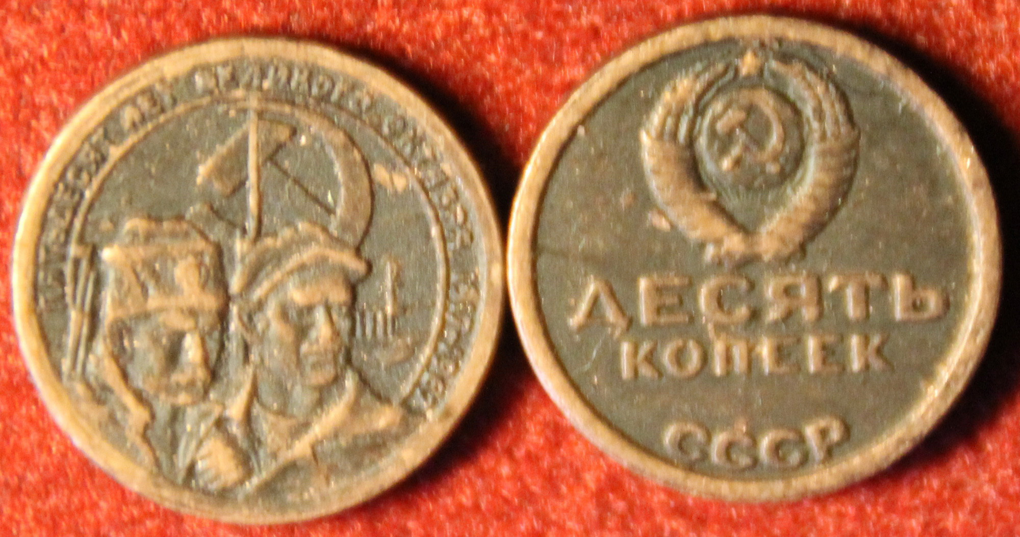 Жетон 10 копеек 1967 СССР Революционеры Пробная Копия медь патина Копия