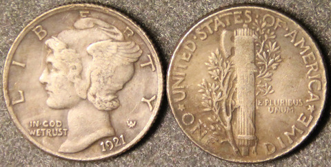 Жетон 10 центов (1 дайм) США 1921 года Меркурий копия Копия