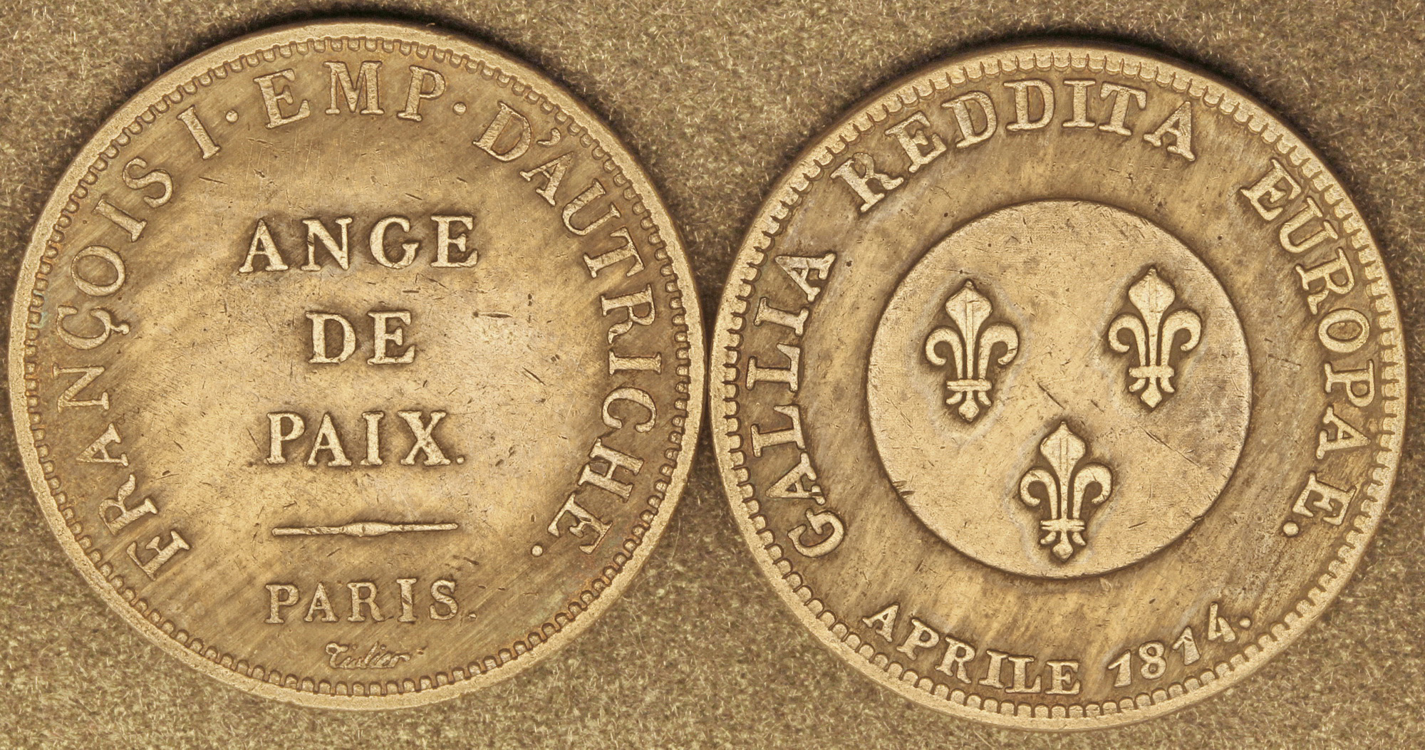 Жетон 2 франка 1814 Франция Освобождение Парижа в честь императора Австрии Франциска 1 посеребрение Копия Копия