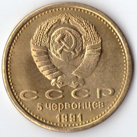 Жетон 5 червонцев 1991 года СССР Победа демократии Горбачев Ельцин бронза Копия