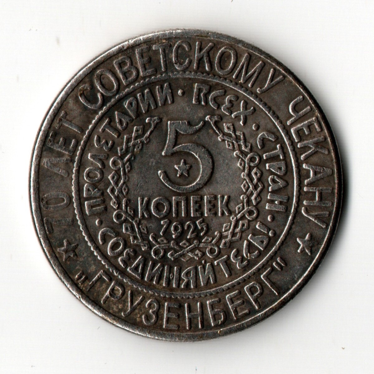 Жетон 5 копеек 1925 года СССР Национальная серия "Кавказ" Грузенберг копия посеребрение.