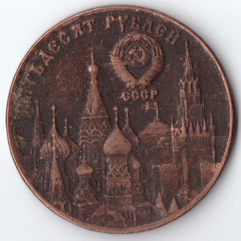 Жетон 50 рублей 1991 СССР Президент М.С. Горбачев медь патина Копия