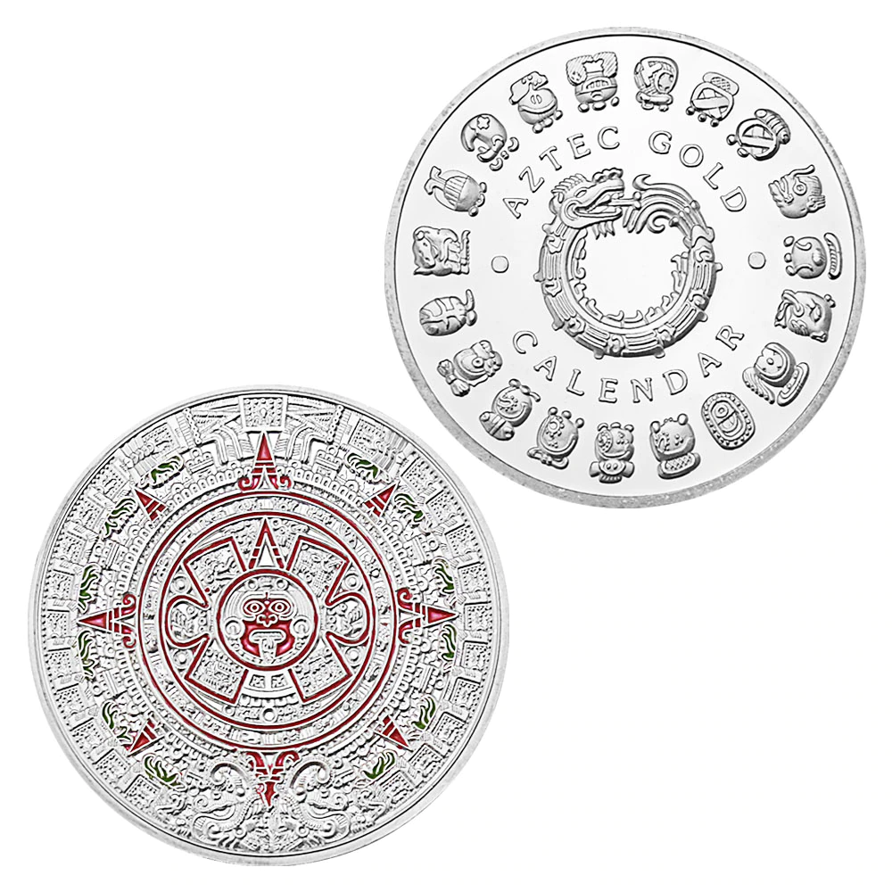 Жетон Календарь Ацтеков (цветной Майя) посеребрение Копия