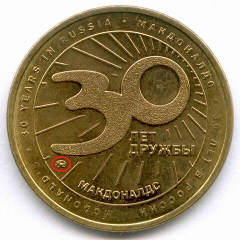 Жетон Макдоналдс "30 лет дружбы - Картошка" 2020 год. ММД. Латунь 28 мм XF-AU