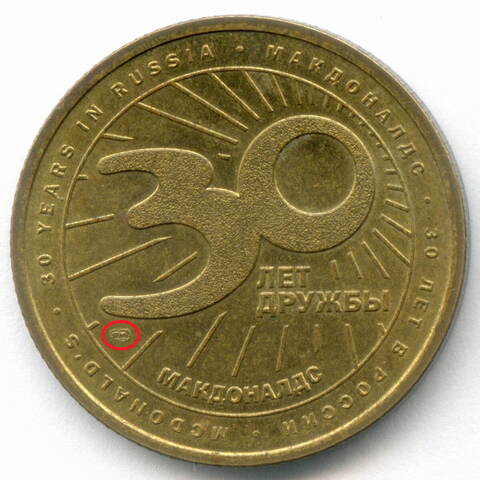Жетон Макдоналдс "30 лет дружбы - Картошка" 2020 год. СПМД. Латунь 28 мм